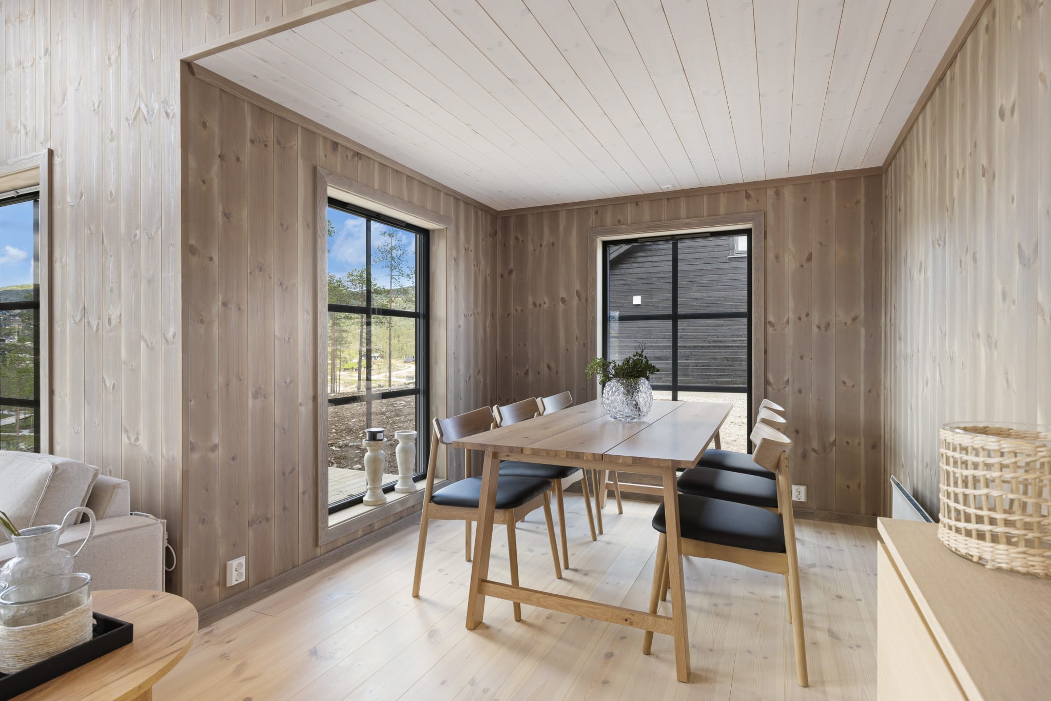 Den 32m2 store hemsen rommer to seperate hemserom og en åpen hemsestue med glassrekkverk.